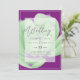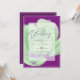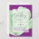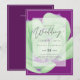 Modern bröllopsinbjudan med textmall fält på båda sidor och en myntblomma, lila, grönt.