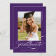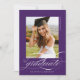 Lila Modern Elegant Script Black White Studenten Announcement har ett vackert skript och ett skript för elegant, tillsammans med dina party-detaljer och ditt fullt-foto på baksidan.