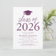 Inbjudan gäster som firar ledigheten med vår moderna klass av inbjudningskort i 2023 studentfester. Inbjudningskorten har en överst placerad studentmössa med "Klass 2023" som visas i lila modern text. Anpassa inbjudningskorten genom att lägga till uppgifter om student namn, skola och studentfest. Inbjudningskorten för studentfest av trendig går tillbaka till visning en lila och vit trellis mönster.