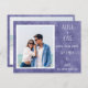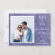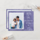 Modern bild av ett platt kort med ett Bröllop spara datum-annonskort med webbplatsinformation, vitt teckensnitt, lila texturerad design för teckentabell.