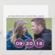 Elegant och trendig Moderna Cirklar Foto Spara Datum Annonsering med tre lila skuggade cirklar där du kan lägga till ditt bröllopsdatum. Denna eleganta design är enkel att anpassa med ditt eget foto och detaljer om ditt bröllop! Klicka på "Anpassa"-knappen för att experimentera med teckensnitt eller textfärger.