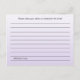 Ge dig ett rådgivningskort med en elegant på lilans bakgrund. Möhippans rådgivningskort är en roligt och ett personligt sätt för gäster att besöka ge och deras råd till lycklig giftermål! Bröden kommer att ta hand om orden av visdom i åratal för komen!