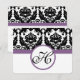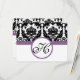 Lila Monogram Heart Damask Grape Trim OSA Kort