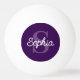 Anpassningsbar dam lutpong boll med ett snyggt, vitt skript namn på mörkens lila, accentuerat med ett lätt lila monogram. Perfekt för att lägga till en personlig i spelet.