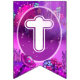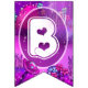 Att gå med party-temat är en buntbanderoll i party med brev "Grattis på födelsedagen" på varje svamp och växter i flagga och lila i bakgrunden med brev inuti en oval. Som en del av temat "Sweet Black Fairy Birthday" är detta en söt design för flickor på deras speciella dag i firande.