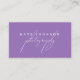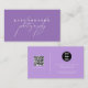 En vacker lila- och vitdesign med namnteckning skriptteckensnitt och QR-kod. Affärskortet av eleganten är idealiskt för alla typer av yrken. Ett enkelt och professionell sätt att främja ditt företag. Ett affärskort för chic av perfekt. Anpassa dina uppgifter för att skapa ditt eget unika affärskort.