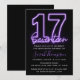 Lila Neon 17-års födelsedagsinbjudan Inbjudningar