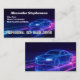 Snyggt retro blå och lila neonthema för ett visitkort för en bilkörningstjänst eller limousine-chaufför. Presenterar en cool generativ AI-bild av en sedan på vägen på natten. Låt passagerare och kunder veta att du är den som kör för en rideshare-tjänst genom att ha eller visa denna coola utrustning på dig själv eller i bilen! Ridesharing är det nya stora ekologiska sättet att resa genom att beställa en bil via din smartphone och samtidigt hjälpa en stadsbo att tjäna pengar.