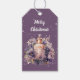 Lila Nostalgic God jul märkre. Illustration av exklusiv parfym omgiven av kristaller från lila blommor och dansande snö. Baksidan av märkrn är designfri så att du kan skriva ditt meddelande eller till... och från.. Dubblans sidade design. Ha en nostalgisk bra, traditionell jul firande.