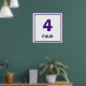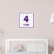 Lila nummer fyra på vit bakgrund med lila gräns. Hjälp din lilla att lära sig siffrorna med den här fjärde designen.