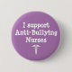 Hjälp till att stoppa mobbningen inom sjukvården genom att använda den här Lilan Knapp för bekämpning av mobbning Student. Att mobba bland sjuksköterskor är verkligt och sker varje dag. Vi förlorar allt fler sjuksköterskor på grund av att tidigt brinner ut. Tala om du ser någon mobbning på jobbet. Knappen är designad med anpassadet lavender lila bakgrund och fet vit text. Texten är "Jag stöder mobbningssjuksköterskor" med en vit medicinteknisk tecknad.