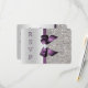 Personliga formella RSVP-platta kort / inbjudningar för alla evenemang - bröllop, baby shower, födelsedagsfest, sweet 16, Quinceanera-firande, förlovning, brud shower etc. Eleganta anpassade silver- och lila dubbelsidiga svars kort med vacker glittrig tryckt glitter, rhinstenar, paljetter mönster, söta blanka tryckta vektorbågar och band och snygga, stilrena tryckta bild diamanter bling juveler. Dessa klassiska glamourösa, moderna svars kort är dekorerade på båda sidor. Vackra, snygga, trendiga, moderna dubbelsidiga kort med glitter och glamour. Jag har matchande produkter i min butik. Text, teckensnitt och färg på teckensnitt är alla anpassningsbara för att möta dina behov. Om
