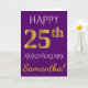Denna enkla, personliga gratulationskortdesign för bröllopsjubileum har meddelandet "GRATTIS PÅ 25-ÅRSDAGEN", där "25" har ett falskt guldliknande utseende. Framsidan har också ett anpassat namn och en lila bakgrundsfärg. Insidan har ett anpassningsbart gratulationsmeddelande för bröllopsjubileum. Det kan ges till en make eller en maka för att fira parets tjugofemårsjubileum. [~Z0000089]