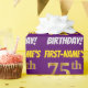 Detta presentpapper har en design med ett meddelande som "FÖRSTANAMN S 75-ÅRSDAG!", där "75" har ett falskt/imiterat guldliknande färgutseende, och där namnet och "FÖDELSEDAG" är i ett roligt, fetstilt teckensnitt. Namnet kan anpassas personligen, och bakgrunden är lila. Presentpapper som detta skulle kanske kunna användas när man ska förpacka födelsedagspresenter som ges till någon för att fira deras sjuttiofemårsdag.