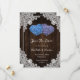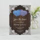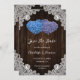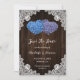 Romantiskt bröllop spara datum-kort för lila och blå blommigt med blommigt-hjärtan mot en lada-bakgrund med vit blommigt snöre. Matchande objekt är tillgängliga.