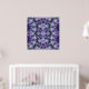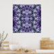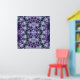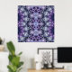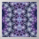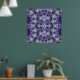 Denna intrikata design visar upp ett geometriskt mönster i kalejdoskopstil i strålande nyanser av lila, lavendel och isblå. Fina spindelnätsliknande linjer skapar en känsla av rörelse och textur och bildar ett symmetriskt, kristallint utseende som känns både futuristiskt och elegant. Den lysande kontrasten mellan ljusa och mörka toner ger designen djup och gör den visuellt fängslande och full av energi.