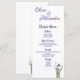 Den här menyn är samordnad med ett urval av stationära och förnödenheter för Lila och Blue Iris Watercolor bröllop. Det är minimalt, enkelt och elegant med art nouveau-känsla och kan vara personlig med bruden och rummen namn, en firande/menytyp och upp till fyra kurser med markeringar. Det finns också som en formulärpanel.