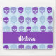 Lägg till ditt namn på mönster-designen för lila och blå smälter döskallar.