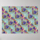 Lila och Blåa blommor Squares Zigzags Poster
