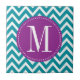 Lila och Blue Chevron Anpassningsbar Monogram Kakelplatta