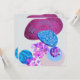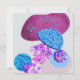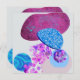 Modern design med en mängd olika former i skuggor av lila, cyan, blått och rosa.