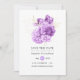 Vattenfärgen lila blommigt bröllop spara datum med faux foil elfenbensfoliage och omvänd elfenbensdamm.