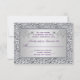 Detta lila och falskt silverfolie blomkort för svar matchar den bröllopsinbjudan som visas nedan. All text är anpassningsbar och likaså är pappersvalet. Om du behöver andra matchande föremål i samma design, vänligen maila din förfrågan till niteowlstudio@gmail.com.