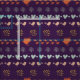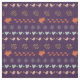 Retro lila och grått mönster av fåglar, dammar, fotsteg, blommor, hjärta, fjärilar