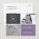 Spara datumfotovykorten genom att välja mellan att lägga till 1 eller 2 foton. Lämna i grund foto av hjärtat i sanden om du vill. Chic grått- och lilac-blockdesign med en enkel använda - lägg bara till namn i briden & Groom, tillsammans med bröllop-datum i det utrymme som tillhandahålls.