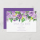Vackra lila och gröna akvarell blommande spara datum-kort. Texten och baksidan av kortet är lila. Anpassa med din egen information.