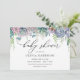 Denna Baby Shower-inbjudan har en akvarellkaskad av lila och gröna suckulenter och grönska. Anpassa med din information för den blivande mamman.