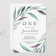 Den första födelsedagsinbjudan till lila och grönt eucalyptus är perfekt för en modern utomhusfödelsedagsfest. Den enkla och elegant botaniska designen har vattenfärgsgrej med lavender-accenter och mörkens lila.