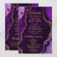 Visa dina gäster genom er ceremoni med detta eleganta bröllopsprogram med en lila agat-marmor design kompletterad med gulddetaljer. Den geod-inspirerade bakgrunden skapar en sofistikerad look, perfekt för höst- och vinterbröllop, formella firanden eller kvällsevenemang. Designad för att samordna med din bröllopspappersutrustning, är detta program idealiskt för att beskriva er gudstjänstordning, brölloppsfest och speciella ögonblick under er dag på ett tydligt och stilfullt sätt. Den rena typografin säkerställer läsbarhet samtidigt som den kompletterar agatstrukturen. Personalisera enkelt all text för att passa er ceremoni och skapa en smidig och polerad upplevelse för era gäster.