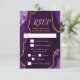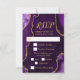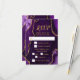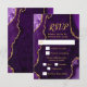Gör ett djärvt och elegant första intryck med detta lila och guldaktiga agat-marmor-RSVP-kort, med rika juveltoner, organiska stentexturer och glänsande guldfärger som är perfekta för höst- och vintersammankomster. Denna design innehåller anpassningsbara textrutor och kryssrutor för måltidsval, så att dina gäster kan ange sina önskemål. Standardalternativen är nötkött, kyckling eller vegetarisk, men dessa kan enkelt ändras för att passa din evenemang. De djupa amethystfärgerna i kombination med metalliskt guldfärgade detaljer skapar en dramatisk men ändå förfinad look som är idealisk för ett bröllops-RSVP, födelsedags-RSVP eller Sweet Sixteen-RSVP med en formell, modern eller glamourös estetik. Inspirerad av naturliga agat- och