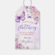 Lila och guld blommig fjäril 1-årsdag presentetikett