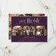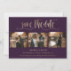 Elegant lila och guld bröllop 4-foto sparar datumkorten med en modern faux guld-skript. Anpassa enkelt detta lila bröllop spara datum med dina uppgifter om bilder och bröllop, inklusive en webbplats för bröllop.