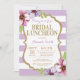 Lila och guld bröllopslunchinbjudan. Akvarell lila och rosa blommig blomster. Guldglitter. Lila och vita ränder. För ytterligare anpassning, klicka på "Anpassa"-knappen och använd vårt designverktyg för att ändra denna mall.