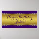 Elegant lila och guld födelsedagsfest-banderoll poster. Den här vackra lila- och guld-födelsedagsbanderollen är lätt att anpassa för evenemanget genom att helt enkelt lägga till din text i det teckensnitt du väljer stil, storlek och färg. Du kan också ändra bakgrunden färg till spelar ingen roll skuggning som du behöver.