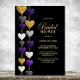Bjud in dina vänner och familj att fira din kommande bröllopsdag med denna stilrena bröllopsfestinbjudan med lila och guld hjärtan. Stilren och förfinad, denna inbjudan sätter den perfekta tonen för en glädjefylld förbröllopsfirande omgiven av de människor du älskar. Du kan enkelt lägga till alla nödvändiga detaljer i den anpassningsbara texten. Välj mellan olika papperstyper och hörnstilar för att göra dina inbjudningar unika. Dessutom har du möjlighet att ladda ner inbjudan om du föredrar ett digitalt format.