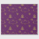 En mycket dekorativ julomslutning papper om lila och guld, med guld inslag av holly, Julgranar, guld-stjärnor och en stor dekoration i guld för att ge dig en mycket elegant att röra på din presentförpackning för den här julhelgen.