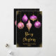 Skicka varma välgångsönskningar med det här sofistikerade julkortet i platt design med fem eleganta utsmyckningar i lila och guld. Varje utsmyckning visar ett unikt mönster - blommor, snöflinga, droppande falskt glitter, diamantmönster och stjärnor - mot en rik svart bakgrund med gyllene gnistrande effekter. Den lyxiga färgpaletten och det raffinerade arrangemanget gör detta kort perfekt för stilfulla familjer, formella välkomster eller företags julhälsningar. Perfekt för dem som älskar modern elegans med en festlig twist.