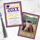 Denna inbjudan till Lila och Guld Photo Studentfest är ett underbart sätt att fira högskolan eller högskolan student. Anpassa detta med namn, skola, år, party och student bild på baksidan. I inbjudan förekommer fet typografi i lila och guld i färg med lila och guld gräns.
