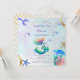 Lila Sjöjungfru under havet med havskräck. "Gå med firande under vattnet med den här fantastiska inbjudan till lila och guld sjöjungfru. En vacker sjöjungfru svan och en viskig havsscen, skapar den en perfekt som passar för en liten sjöjungfrus speciella dag.