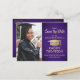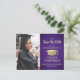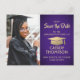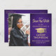 de glatta nyheterna om en kommande studentfest med anpassningsbar fotot lila och guld spara postkortsinbjudningarna. Bild och formuleringen i denna mall är enkla att anpassa och färg kan ändras med Zazzle-designen verktyg. Anpassa den med student namn, klassår och annan information om ditt val. Utformningen har ett faux foil mortar board-lock, elegant modern kalligrafi, klassisk vintage-typografi och ett favoritfoto, t.ex. ett överordnat bild eller en bild från startceremonin. Observera att guld är tryckt på färg, inte metallfolie. Dessa kort från snyggt studenten är ett elegant för att en speciell dag firande med familj och vänner. Grattisar till student!