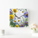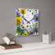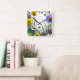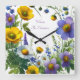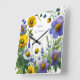 Lila- och gult-blommor anpassa text fyrkantig klocka