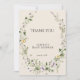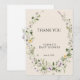 Skicka ditt hjärtliga tack med stil med detta vackert koordinerade "Liten blomstrande en" barnkalas tackkort. Med mjuk akvarellgrönska, ömtålig lavendel och soliga gula blommor kompletterar detta kort perfekt trädgårdsinspirerade kalas-temat.
