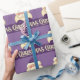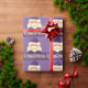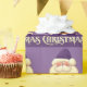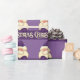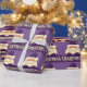 Roligt julklapp i lila, med en liten krämjul i rand och poka-prickar.