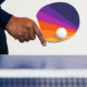 Abstrakt illustration av diagonalreflexen stil rand i lila, blått, orange och gult färg på mörk blått bakgrund