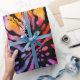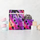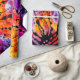 Den digitala konsten i bakgrunden har en bild av lila, svart och fiery lava tie dye stil med abstrakt oljespillning eller utomjordisk amoeba-design. Halloween-tema för din hemdekanter. Svart, lila, gult, orange och rödaktig.