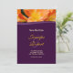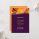 En orange blomsterfotografering på en lila bakgrund ger denna inbjudan en unik och originell touch.